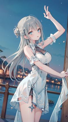 masterpiece,best quality,1girl, blue_eyes, bare shoulders, long hair, dress, ,cowboy shot, dynamic pose, dynamic angle