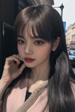 photorealistic:1.37, masterpiece, best quality, raw photo, uhd, 1girl, long hair, brown hair, seductive, secretary outfit, model pose, looking at viewer, on street, intricate detail, detailed background, detailed skin, pore, highres, hdr,little_cute_girl,Korean,DararatBoa,1girl,Sexy