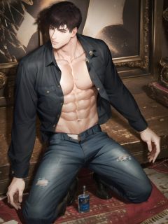 <lora:光与夜之恋画风-000009:1>,gyyzl,muscular, pectorals, muscular male, 1boy, male focus, abs, bara, male underwear, solo, torn clothes, navel, nipples, pants, kneeling, short hair, large pectorals, briefs, underwear, open pants, brown hair, torn shirt, tearing clothes, shirt, brown eyes, torn pants, bulge, looking at viewer, parted lips, best quality,masterpiece,highres