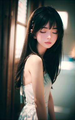 cinematic film still 1girl,closed eyes,light blue,Straight hair,long hair,light cream,upper body,light simple background,looking at viewer,blunt bangs,, . shallow depth of field, vignette, highly detailed, high budget, bokeh, cinemascope, moody, epic, gorgeous, film grain, grainy,1girl