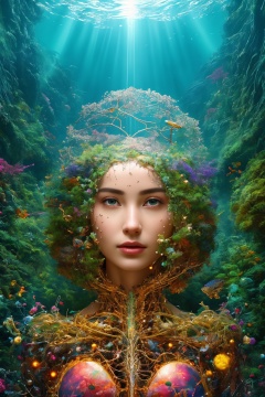 (best quality, 8K, highres, masterpiece),  ultra-detailed,  (photo-realistic,  lifelike) cinematic close-up photograph of a captivating neural network organism. This ethereal creation seamlessly merges the features of a divine woman with an intricate anatomical face,  showcasing mesmerizing biomechanical details. The high-resolution image captures the essence of a surreal fusion between biology and technology,  creating a true masterpiece that invites viewers into a world of wonder and intrigue.