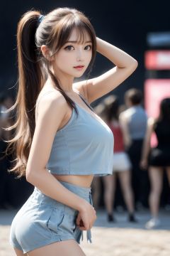 1girl,solo,Best quality,masterpiece,realistic,real,beautiful perfect face,long_hair,huge bust,huge filesize,weak light,look at the audience,full_body,<lora:aki:1>,camisole,ponytail,