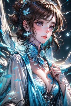 (((masterpiece))), (((best quality))), ((ultra-detailed)),good composition,(illustration),(( 8k wallpaper)),  (detailed light),UHD,((an extremely delicate and beautiful)), (beautiful detailed eyes),beautiful art, artistic, realistic, (((hand with five delicate fingers))), ((perfect anatomy)),glossy skin, fine skin, vibrant colors, closed mouth,((1 girl, female, womanly face)),watercolor_(medium),more_details:-1, more_details:0, more_details:0.5, more_details:1, more_details:1.5, intricate detail, solo,hertasr,((brown hair,purple eyes)),dress,dollgirl,angel, large open wings made of ice, seductive young woman, beautiful, gorgeous, fractal, frozen, icy, frost, freezing air, snowflake flow, snow floor, crystalline atmosphere, ice elemental, fantasy, mesmerizing glittering intricate dress,huansha
