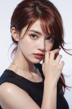 1girl,face,Undercut Fade,red hair,white background,