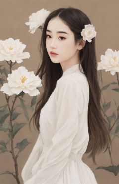 Bestquality,masterpiece,1girl,beautiful_face,eyebrows_visible_through_hair,lily_\(flower\),dress,holding_flower,from_side,watercolor style