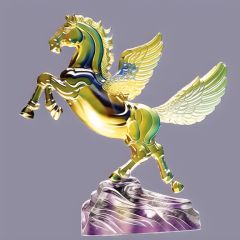 <lora:琉璃艺术_glaze-000005:0.9>,masterpiece,best quality,glaze, no humans, simple background, horse, wings, grey background, open mouth, solo, tail, full body