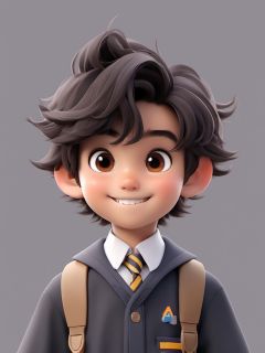 Pixar style,  MG ip,  1boy,  solo,  male focus,  brown eyes,  looking at viewer,  portrait,  black hair,  simple background,  grey background,  school uniform,  male child,  short hair,  smile,  closed mouth, <lora:EMS-45923-EMS:1.000000>