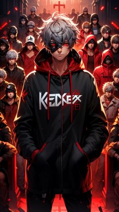 <lora:mn_20231007092457:0.9>,mn,red eyes,hands in pockets,male focus,hood,looking at viewer,6+boys,glowing,red theme,glowing eyes,white hair,1boy,closed mouth,short hair,mask,