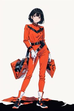 (masterpiece:1.3), (the best quality:1.2), (super fine illustrations:1.2), (Masterpiece), high quality, high detail,((white background:1.2)), looking at viewer, (SOLO:1.4),outline,,simple background,  mat_style,orange_bodysuit,military_uniform,helmet,belt,mat_style,white_gloves,uniform