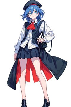 (masterpiece:1.3),(the best quality:1.2),(super fine illustrations:1.2),(Masterpiece),high quality,high detail,(white background:1.2),looking at viewer,(SOLO:1.4),outline,simple background,,solo,fu_hua,1girl,hat,blue_eyes,hair_between_eyes,full body,