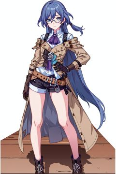 (masterpiece:1.3),(the best quality:1.2),(super fine illustrations:1.2),(Masterpiece),high quality,high detail,(white background:1.2),looking at viewer,(SOLO:1.4),outline,simple background,, fu hua,glasses,brown_footwear,boots,blue_eyes,