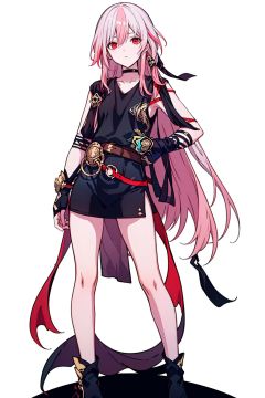(masterpiece:1.3),(the best quality:1.2),(super fine illustrations:1.2),(Masterpiece),high quality,high detail,(white background:1.2),looking at viewer,(SOLO:1.4),outline,simple background,, hair_between_eyes,pink_hair,white_hair,multicolored_hair,red_hair,red_eyes,fu_hua,solo,