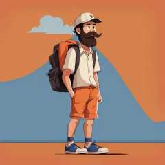 <lora:xuehua:1>,xh,1boy,shorts,male focus,solo,shirt,facial hair,hat,white shirt,collared shirt,bag,white footwear,blue shorts,simple background,backpack,shoes,short sleeves,mustache,full body,black hair,standing,shadow,orange background,baseball cap,white headwear,beard,profile,