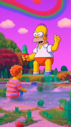 looking over shoulder, (porcelain cybernetic mechanical wires:1.3) , laser eyes, (mechanical vertebra and back, wires and cables:1.5) , mechanical body, art by El Greco, Land Art, establishing shot of a Vintage (a photo of Homer Simpson with blonde Super Saiyan hair:1.3) , Canon, Cruel Hat, Tail, Large Neon Eyes, Snowing, Depressing, intricate details, Accent lighting, Kodak portra 400, 50mm, de dia los muertos, rainbow swirl, cyborg mecha, Futuristic, highly detailed<lora:add-detail-xl:1> <lora:dalle-000007:0.79> <lora:vhsart:1>