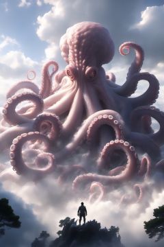 Hyperrealistic art BJ_Sacred_beast,octopus,outdoors,sky,day,cloud,tree,no_humans,scenery,tentacles,monster,giant,cinematic lighting,strong contrast,high level of detail,Best quality,masterpiece,White background,<lora:SDXL_Sacred_beast:0.7>, . Extremely high-resolution details, photographic, realism pushed to extreme, fine texture, incredibly lifelike