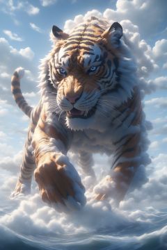 Hyperrealistic art BJ_Sacred_beast,tiger,full body,run,suspension,outdoors,sky,day,cloud,water,blue_sky,ocean,cloudy_sky,cinematic lighting,strong contrast,high level of detail,Best quality,masterpiece,<lora:SDXL_Sacred_beast:0.7>, . Extremely high-resolution details, photographic, realism pushed to extreme, fine texture, incredibly lifelike