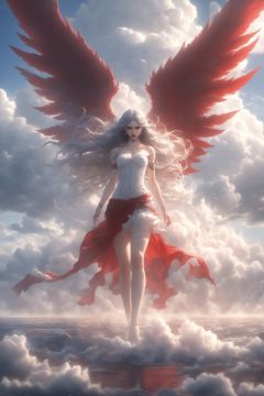 Hyperrealistic art skin gloss,light persona,(crystalstexture skin:1.2),(extremely delicate and beautiful),pov,(white_skin:1.2),1girl,solo,long_hair,bare shoulders,red_dress,skirt,(((wings,red_wings))),(full shot),looking_at_viewer,BJ_Sacred_beast,full body,run,suspension,outdoors,sky,day,cloud,fire,water,blue_sky,ocean,cloudy_sky,cinematic lighting,strong contrast,high level of detail,Best quality,masterpiece,<lora:SDXL_Sacred_beast:0.7>, . Extremely high-resolution details, photographic, realism pushed to extreme, fine texture, incredibly lifelike