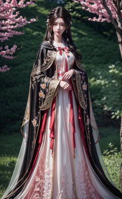 (Good  structure), HDR, UHD, 8K, A real person, Highly detailed, best quality, masterpiece, 1girl, realistic, Highly detailed, (EOS R8, 50mm, F1.2, 8K, RAW photo:1.2), ultra realistic 8k,  (best illumination, best shadow, extremely delicate and beautiful), (official art, beautiful and aesthetic:1.2),  solo,  1girl, ,long hair,Wind, flowing hair,, ,pose for picture,,looking_at_viewer,,perfect body,full_body,A colorful garden background,,jiangli,cloak