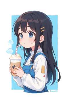 Masterpiece, best quality, clean picture (simple style) no extra lines (concise style) 8k high-definition picture girl, hairpin (white Han suit) white lotus, holding a large paper cup of coffee, straw, auspicious cloud, long hair ((side)) overall painting style is white (simple lines) (side face)