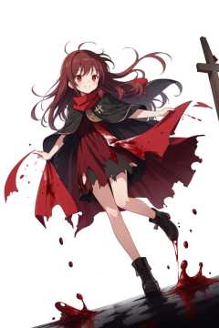 // [(white background:1.4)::5],(imid shot:0.95),(full body:1.25),Dynamic angle,(official art:1.2),// extremely delicate and beautiful,2d,depth of field,solo,a beautiful detailed girl,solo,// (an extremely delicate and beautiful girl),1 girl,solo,assertive female,((messy long hair)),dark red hair,red eyes,dark dress,red scarf,torn clothes,arrogant smile,despair,heroic fight,detailed background,(church:1.3),cloak,many feathers,depth of field,beautiful detailed shadow,dust,splashing blood,((blood rain)),light shafts,good lighting,tyndall effect,// double exposure,visual impact,best quality,