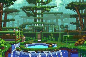 (Pixel art:1.4), firm stance, combat stance, Focus on (Barbarian, Master, Tall, Stocky, Oval Face, Fair Skin, Salt and Pepper Hair, silver Eyes, Narrow Nose, Pouty Lips, Sharp Chin, Imperial, Bald, Afro, A lush elven forest, filled with towering trees and sparkling streams)