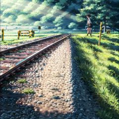 mz-hd, 1girl, outdoors, scenery, grass, railroad tracks, skirt, solo, school uniform, sunlight <lora:1010ndmzyh-000016:0.8>