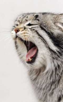 s4s the pallas's cat,opens its mouth wide in a typical yawn,showing tiredness or contentment,4K HD hi-res photo,realistic Hasselblad photography,natural light,white background,<lora:s4sV1:0.8>,