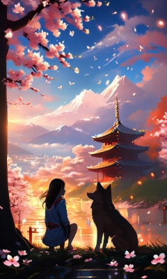 狼与少女夕阳剪影 - V1.0