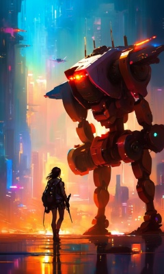 masterpiece,(best quality:1.3),<lora:ArienGirlWolf-LORA:1>,1girl,arien_wolf,cyberpunk,aircraft,mecha,robot,