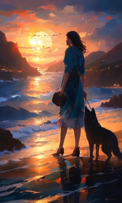 狼与少女夕阳剪影 - V1.0