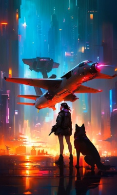 masterpiece,(best quality:1.3),<lora:ArienGirlWolf-LORA:1>,1girl,arien_wolf,cyberpunk,aircraft,