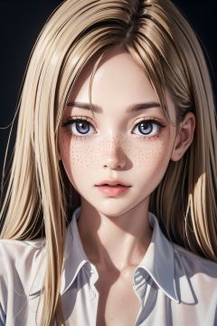 (highres,ultra-detailed,realistic:1.37),portrait,beautiful girl in a suit,white shirt,freckles,professional photography,close-up,upper body
