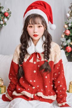 1girl, solo, Christmas hat, Braid, UHD, textured skin, high details, best quality, anatomically correct, 16k