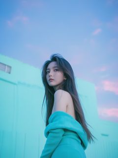 xxmixgirl, (masterpiece:1.0), (highest quality:1.12), (HDR:1.0), a girl with long hair looking at viewer, with a teal background and a indigo sky, constant, vaporwave colors, a character portrait, synchronization, detailed, realistic, 8k uhd, high quality, monkren