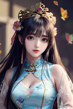 (((masterpiece))), ((the best quality, super fine illustrations, beautiful and delicate water)), Depth of field, fine 8KCG wallpapers, ( delicate light), ((cinematic lighting)), (portrait), Portrait lens, (((Alphonse Mucha))), ((Fantasy style)), ((shine)), (((China_Cheongsam))), (delicate eyelash), ((cute anime face)), (extremely delicate and beautiful), (hair_flower), (Gem), (crystal), ((colored inner long hair)), (multicolored), (beautiful detailed face ), ((( detailed long hair ))), floating long hair, gradient hair, (lace), (ribbon), ((crown)), (detailed cloth)((Butterfly)), (detailed Butterfly), (multicolored Butterfly), (neon palette), ((detailed flowers)), ((multicolored flowers)), (flowers_Surrounded), (Butterfly_Surrounded)(((Flowers fill the screen))), ((Fill the screen)),