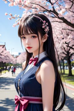 (((masterpiece))), (((bestquality))), ((ultra-detailed)), {1?girl:2),(cherry blossoms tree along the street),(illustration),ojousama,(solo),hidden hands,((anextremelydelicateandbeautiful)),((beautifuldetailed bluesky)),beautifuldetailedeyes,wind,ribbons,bowties,buttons,bareshoulders,elegant dress,((breeze)),flyingpetals,