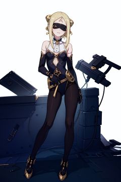 (masterpiece:1.3), (the best quality:1.2), (super fine illustrations:1.2), (Masterpiece), high quality, high detail,((white background:1.2)), looking at viewer, (SOLO:1.4),outline,,simple backgroundhair ornament, hairband, braid, long sleeves, bangs, shoes, black jacket, bodysuit, veil, boots, hair rings, covering eyes, braided bun, eye mask, hair bun, domino mask,black blindfold, eyepatch, covered eyes, long hair, mask, bare shoulders, pantyhose, blonde hair, hair ornament