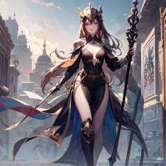 {{masterpiece}}, best quality,extremely detailed CG unity 8k wallpaper,cinematic lighting, Snapchat selfie,((One girl)), (solo),goddness,beautiful detail eyes,beautiful detail sky,demure,honourable,facial features, Smile,full body,medium breasts,Knight helmet,Medieval armor,armed with long spear,highers,long bloud hair,wavr hair,temple background,