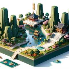 masterpiece, best quality,  <lora:minimap:1>,minimap, east asian architecture, architecture, water, tree, river, white background, stairs, bridge, snake, fantasy, forest, building, shrine, grass, simple background