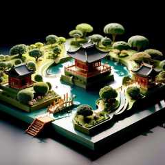 masterpiece, best quality, <lora:minimap:1>,minimap, east asian architecture, tree, architecture, mountain, bridge, water, watercraft, river, cloud, pagoda, building, sky, boat, shrine, forest, night, house, torii, black background, stone lantern, stairs, tower, rock