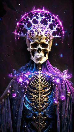 (Concept Style: 1.5) Golden Crown, Invincibility, Demon King Skeleton, Scepter, Intricate Details (Fractal Art: 1.5) (Premium Colors: 1.5) Concept Virtual Demon King Skeleton with supernatural energy surrounding him, transparent light runes clothing and cloak, Let him become a transcendent existence, exuding powerful supernatural energy, presenting a complete mysterious, extraordinary and powerful image