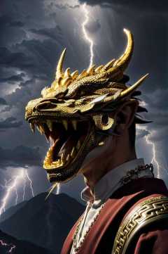 male focus, dragon, horns, eastern dragon, open mouth, white hair<lora:dragon-HXZ:0.7>(detailed light), ((lightning in hand)),lightning surrounds,(((lightning chain))),