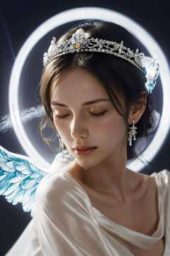 <lora:purple-HXZ:0.7>1girl, solo, jewelry, earrings, closed eyes, flower,(sunlight),(angel),dynamic angle, floating, wing, halo, floating white silk,(Holy Light),silver stars,