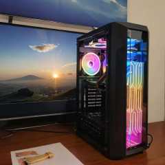 <lora:box-HXZ:0.6>no humans, (Computer Case:1.1),color fan,volcano,summer,spring,sunset,