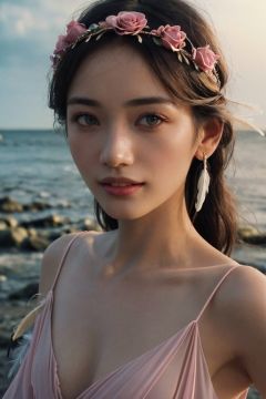 (pastel color:1.2), (High detail RAW Photo), 1980s \(style\), ((led strip lights)), (Buff and Rose pink ambient:1.3) ((close up:0.7)), (extremely detailed skin, photorealistic, heavy shadow, dramatic and cinematic lighting, key light, fill light), sharp focus, film grain, grainy, cinematic, imperfect skin, fabrics, textures, detailed face, detailed skin, warm colors NaturalHand2-3500, (pastel color:1.1), (High detail RAW Photo), (extremely detailed skin, photorealistic, heavy shadow, dramatic and cinematic lighting, key light, fill light), sharp focus, film grain, grainy, cinematic, imperfect skin, fabrics, textures, detailed face, detailed skin, detailed fingers, warm colors NaturalHand2-3500, <lora:add_detail:0.3>(upper_body:1.2),(seductive smile:1.1),(Boho_chiffon_maxi_dress:1.5),(Feather_headpiece:1.4),(Barefoot_sandals:1.3), <lora:龇牙V1:0.3>smile, teeth,ziya,