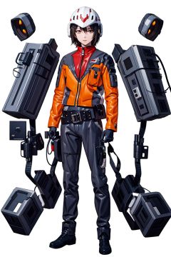 (masterpiece:1.3), (the best quality:1.2), (super fine illustrations:1.2), (Masterpiece), high quality, high detail,((white background:1.2)), looking at viewer, (SOLO:1.4),outline,,simple background,belt, orange jacket, helmet, jacket, military uniform, uniform,