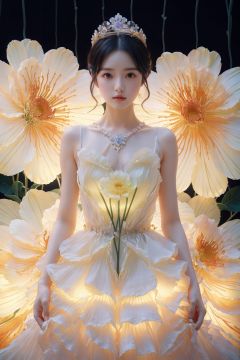 masterpiece, Gem, Luminescence, princess, Crown, Huge flowers, Flower, Flowers, Flowers, Flowers, Black dress, Medium chest, Lovely, Big eyes, anatomically correct, high details, best quality, HD, 16k, sparkling dress