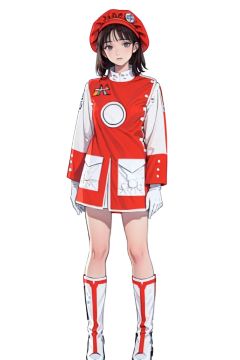 (masterpiece:1.3), (the best quality:1.2), (super fine illustrations:1.2), (Masterpiece), high quality, high detail,((white background:1.2)), looking at viewer, (SOLO:1.4),outline,,simple background, white gloves,red headwear, boots,hat, white footwear, red shirt,