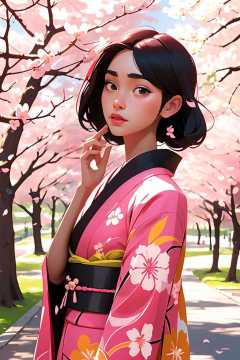 (best quality, masterpiece), 1girl, kimono, cherry blossoms,