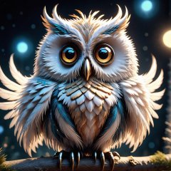 (feathery monster that resembles a celestial owl with downy plumage in light cute atmosphere), 8k octane render, high detail, masterpiece, hyperdetailed, intricate details,